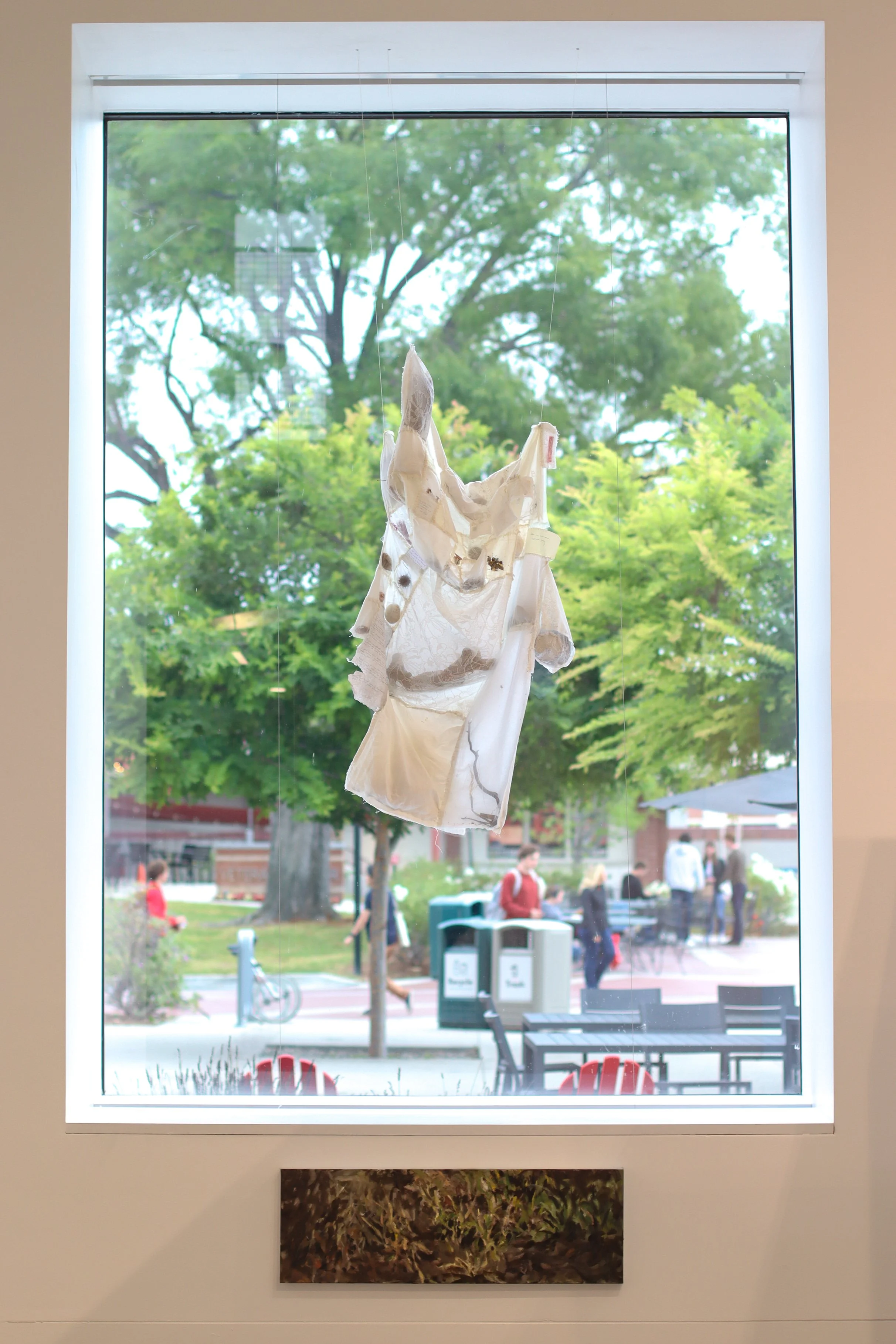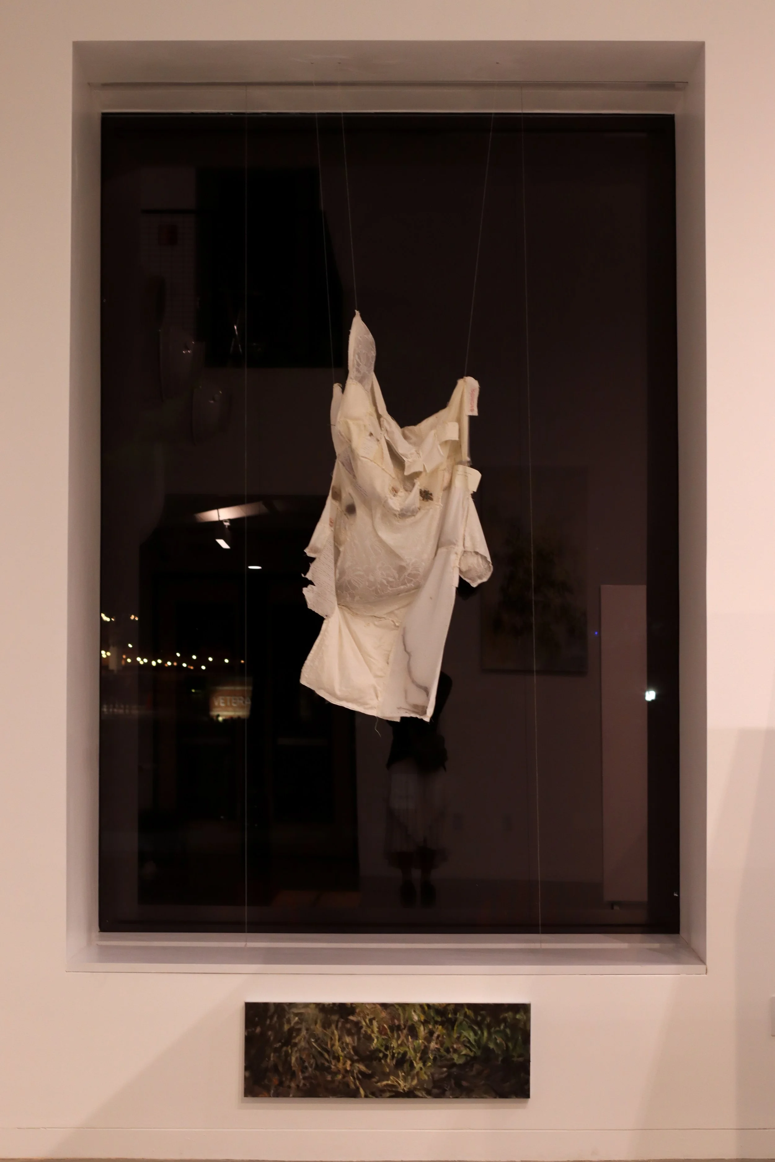 Dimensions: growing // Materials: Found fabric, found objects, thread
